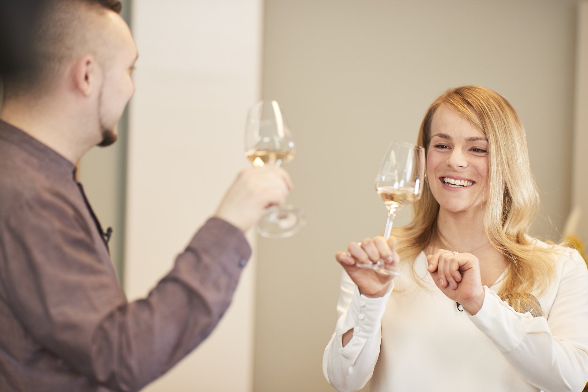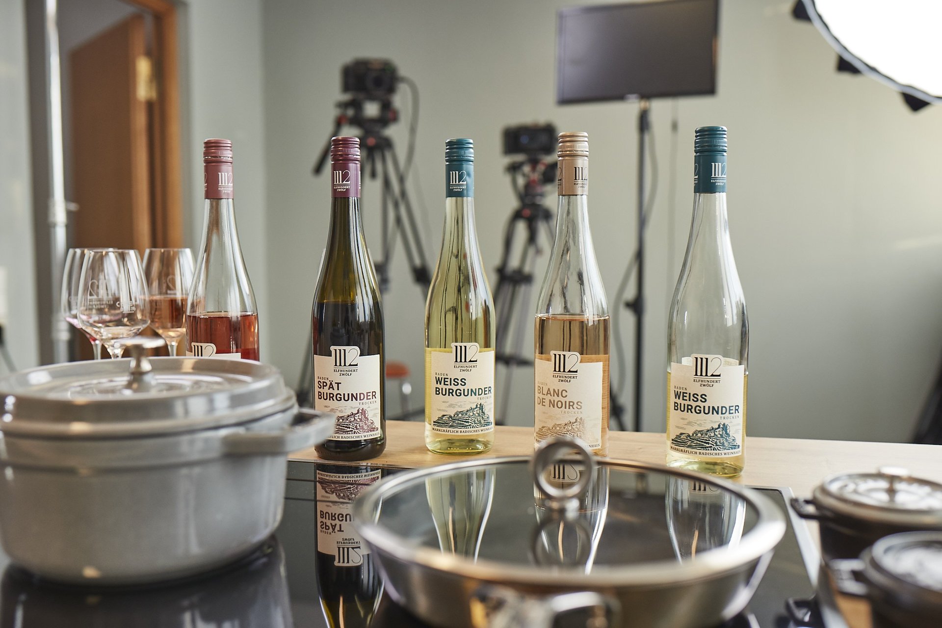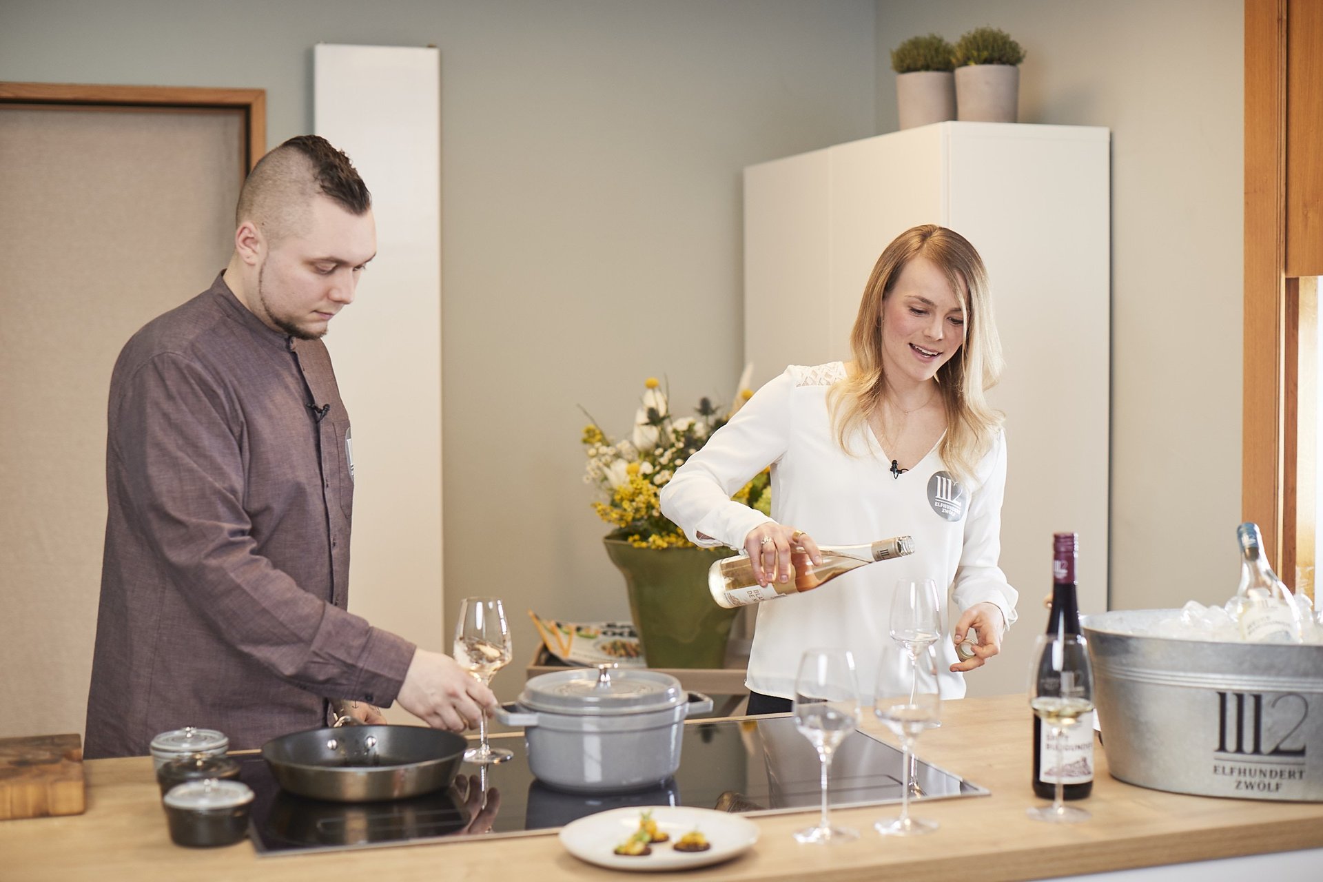 Katharina Staab (Winzertochter, ehemalige Deutsche Weinkönigin und 1112-Weinexpertin) verkostete vier Weine mit 35 Gewinnern und Publikum vor deren Laptops: Weißburgunder, Blanc de Noirs, Rosé und Spätburgunder. Profikoch Moritz Crone-Rawe vom Live-Cooking-Portal Onechef.de präsentierte die passenden Snacks. Wir haben für euch die spannendsten Fragen rund ums Wein-Know-how zusammengetragen.