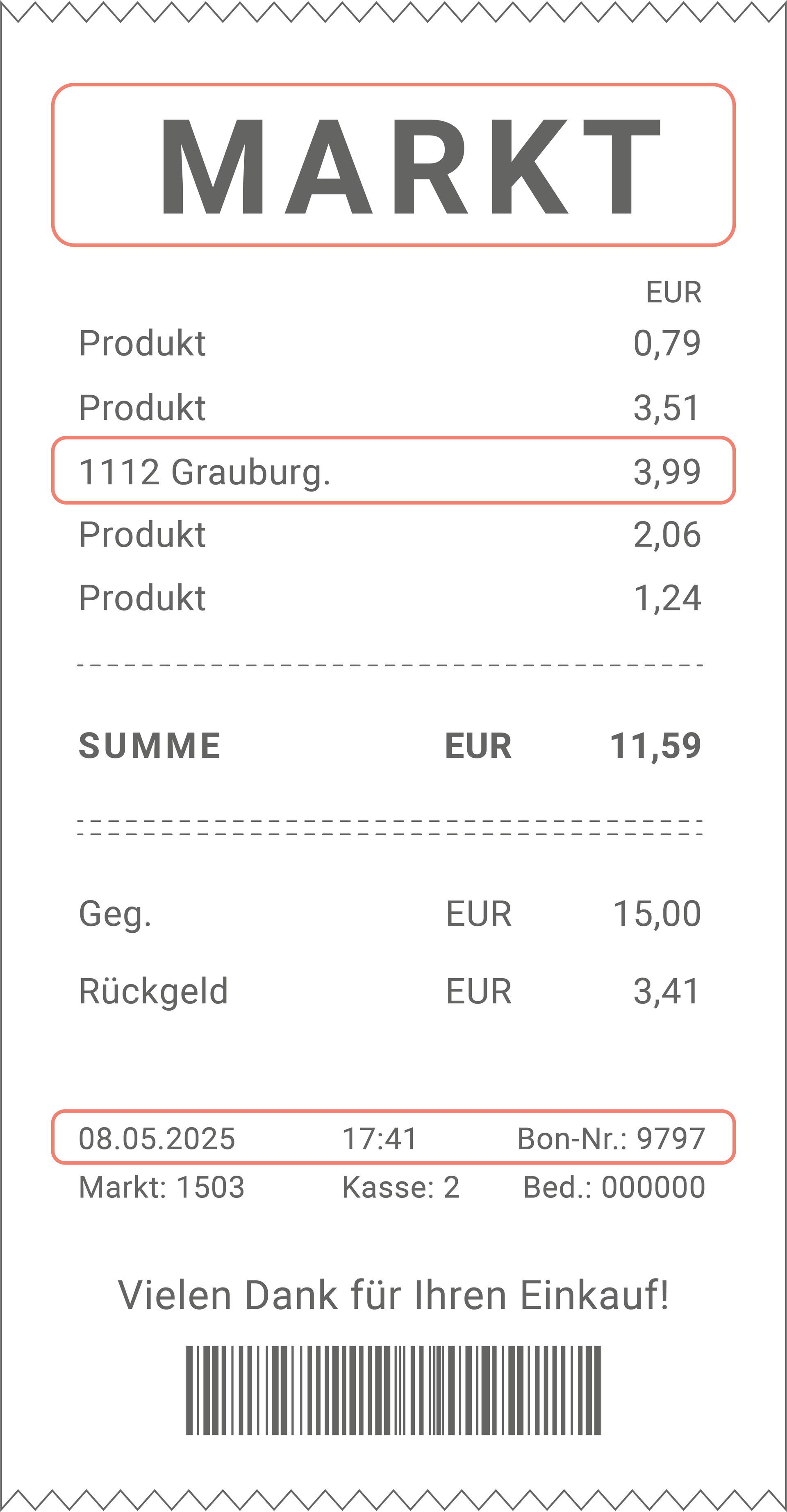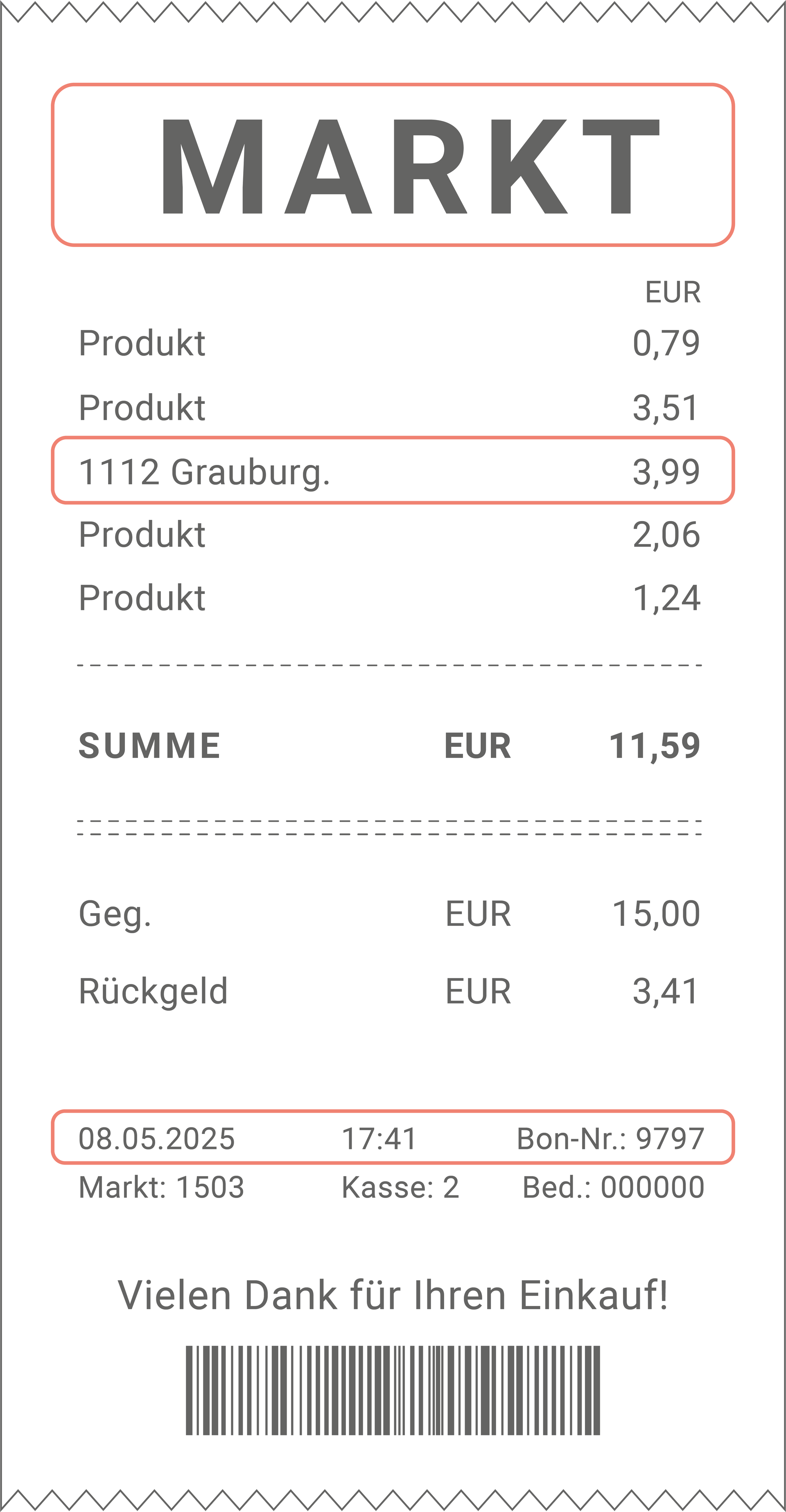 - Dein Kassenbon muss vollständig abfotografiert sein.